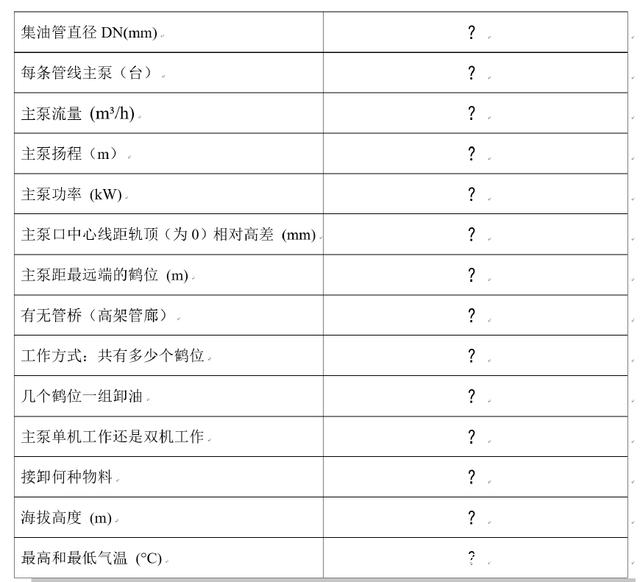 火車槽車卸油是相對復(fù)雜的系統(tǒng)工程,電動鶴管潛油泵做為輔助泵,選型過程中需要大量了解參數(shù)。具體如下圖: