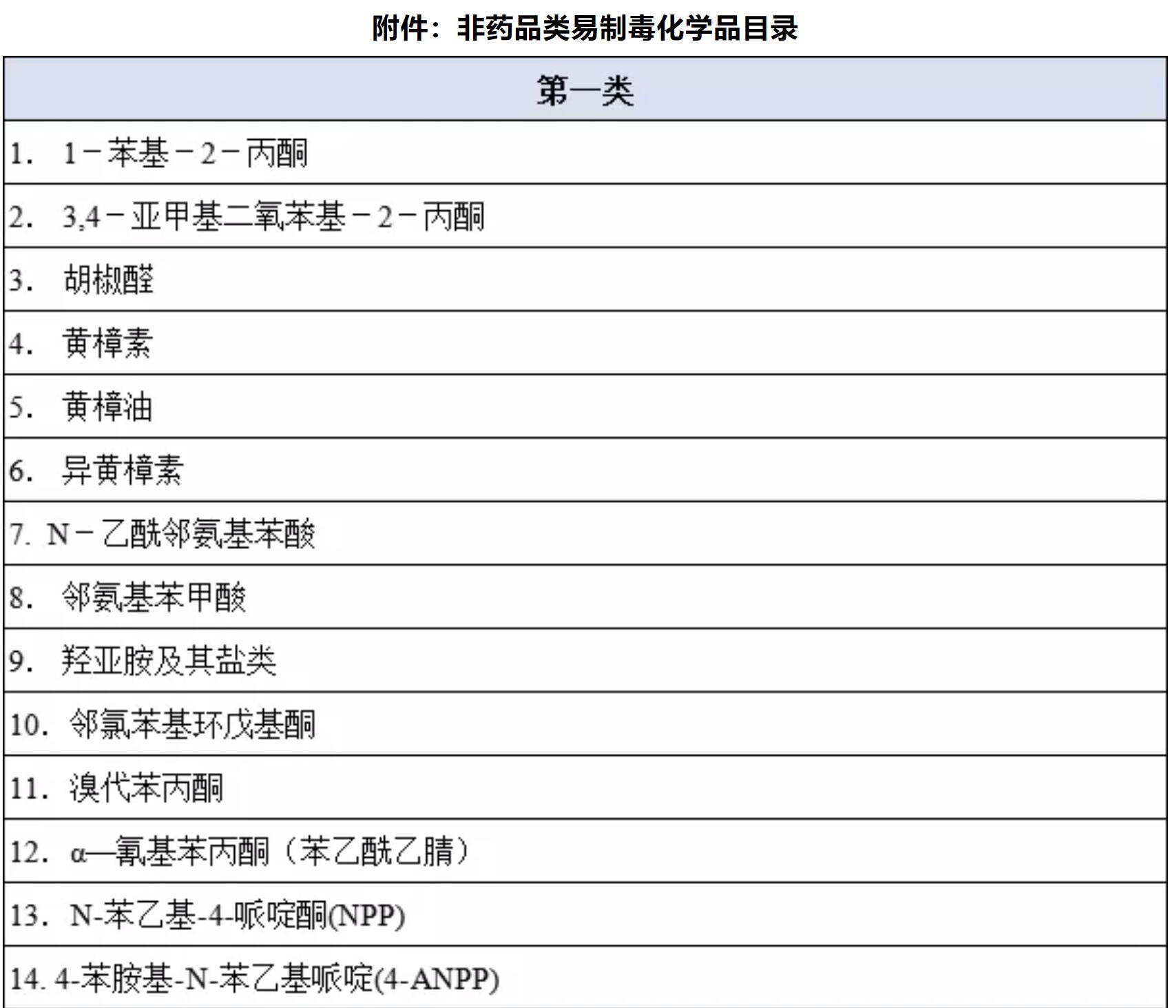 附件:非藥品類(lèi)易制毒化學(xué)品目